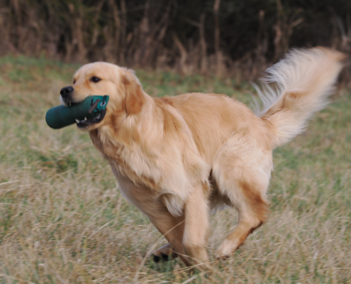 Die eigentlichen Feiertage sind vorbei, und endlich kehrt wieder so viel Ruhe ein, dass man sich guten Gewissens seinem Hobby und was so dazugehört widmen kann… Bestimmt hat manch einer Probleme, meine Hunde auf den Fotos auseinander zu halten. Meallan ist ja noch recht einfach. Aber wer ist wohl der Dummy verrückte Hund, der sogar am Baumstamm hochklettert, um an sein geliebtes Stück zu kommen…? Nee, nee, Charline ist das nicht, mit ihren 9 Jahren steht sie über solchen Spielchen… Meallans großer Lehrmeister für beinahe alle Lebenslagen ist unser Ruhepol Iniko, die auch bei den Markierungen so genau und gründlich ist, dass sie ja keinen Schritt zu viel laufen muss. Da kann sich so mancher Speedy echt eine Scheibe von abschneiden.